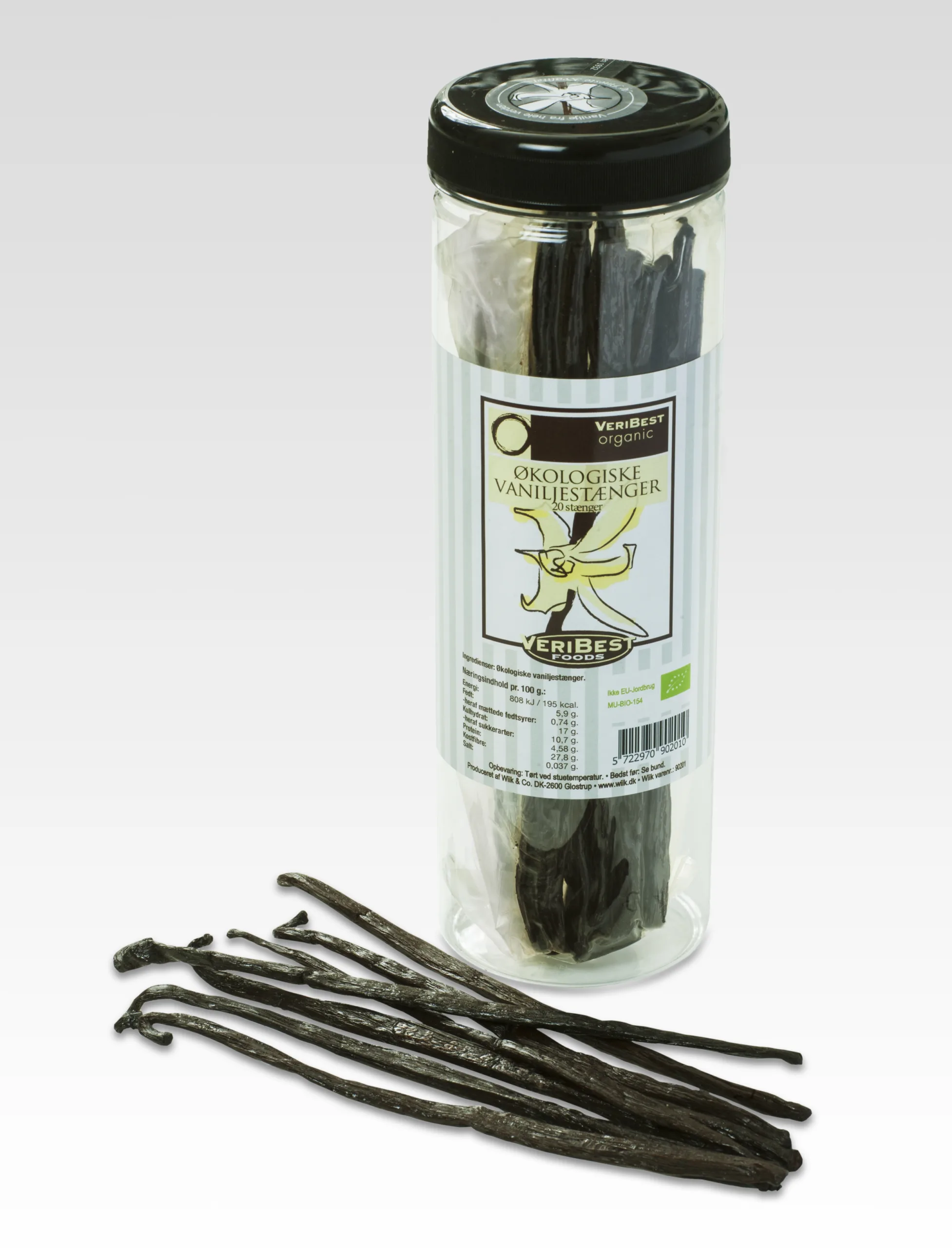 Handelsnavn: Vaniljestænger øko i bøtte FT Veribest 12x20stk