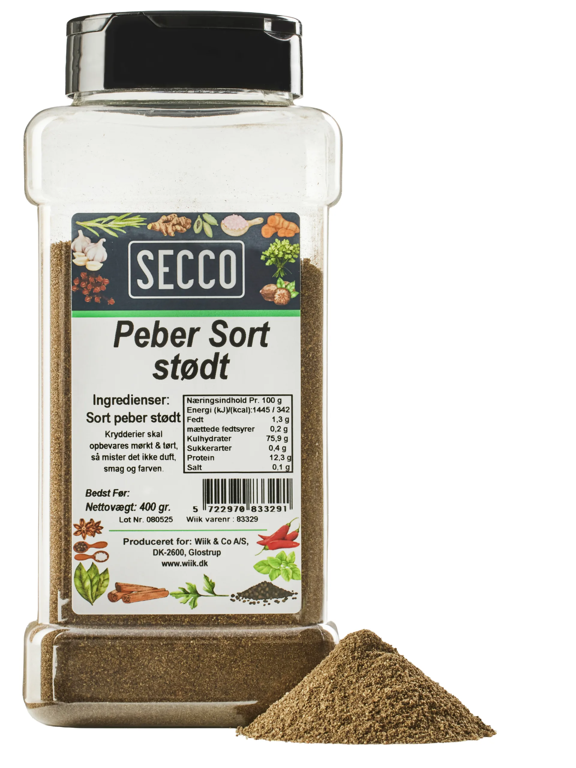 Handelsnavn: Peber sort stødt Secco 12x400g