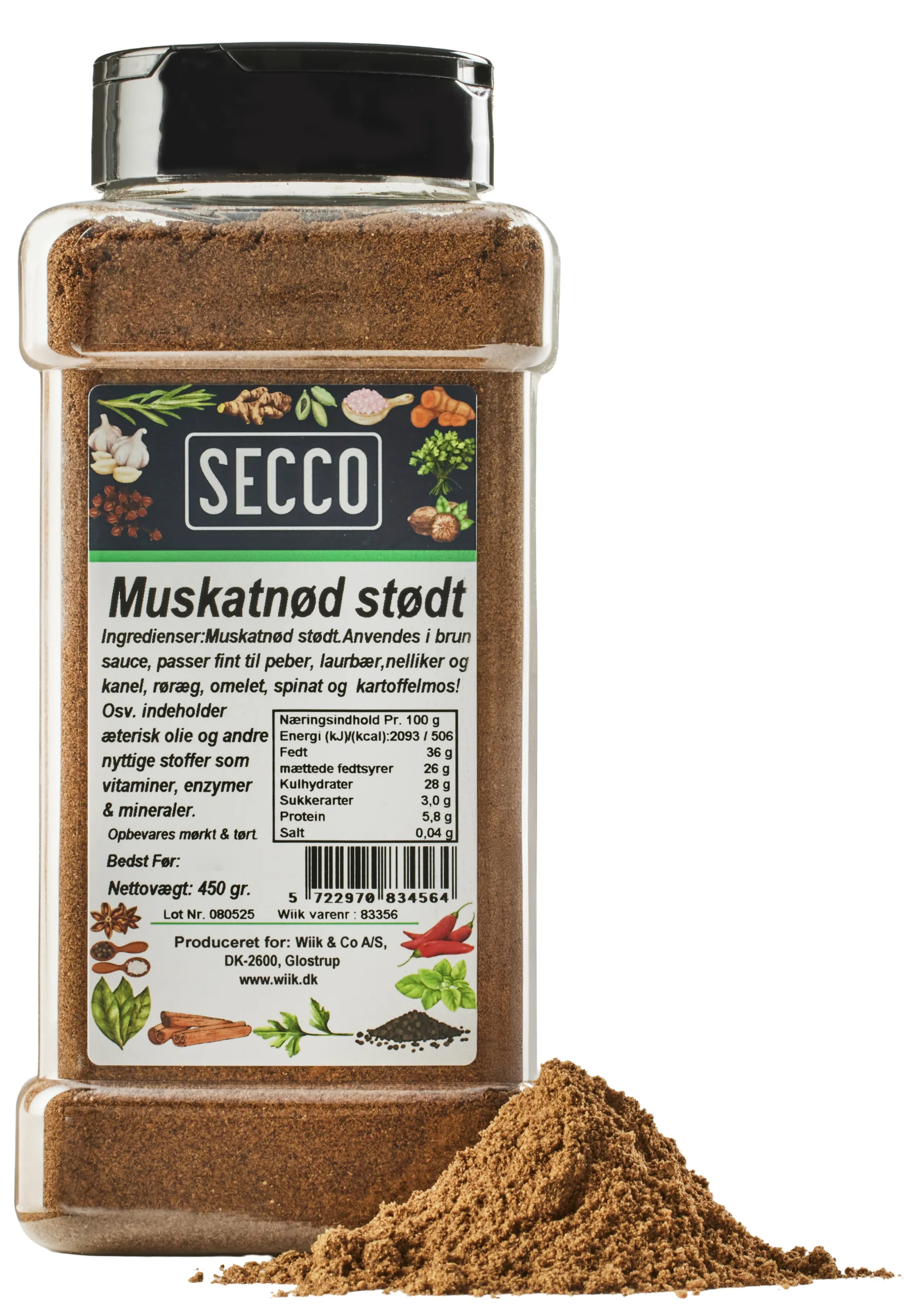 Handelsnavn: Muskatnød pulver Secco 12x450g