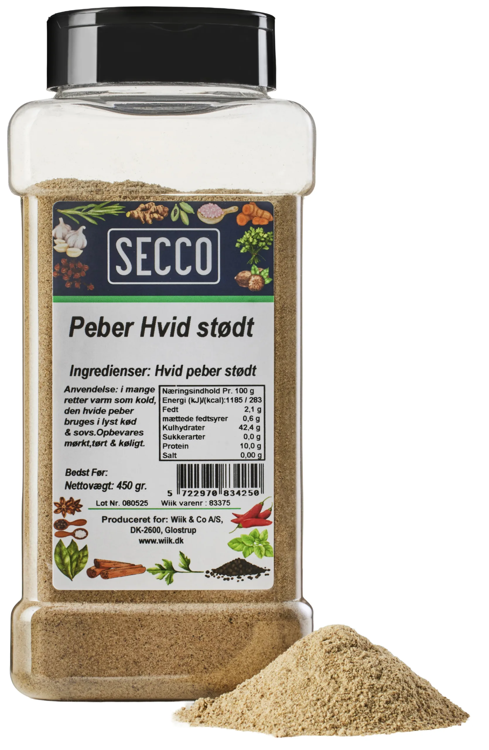 Handelsnavn: Peber hvid stødt Secco 12x450g