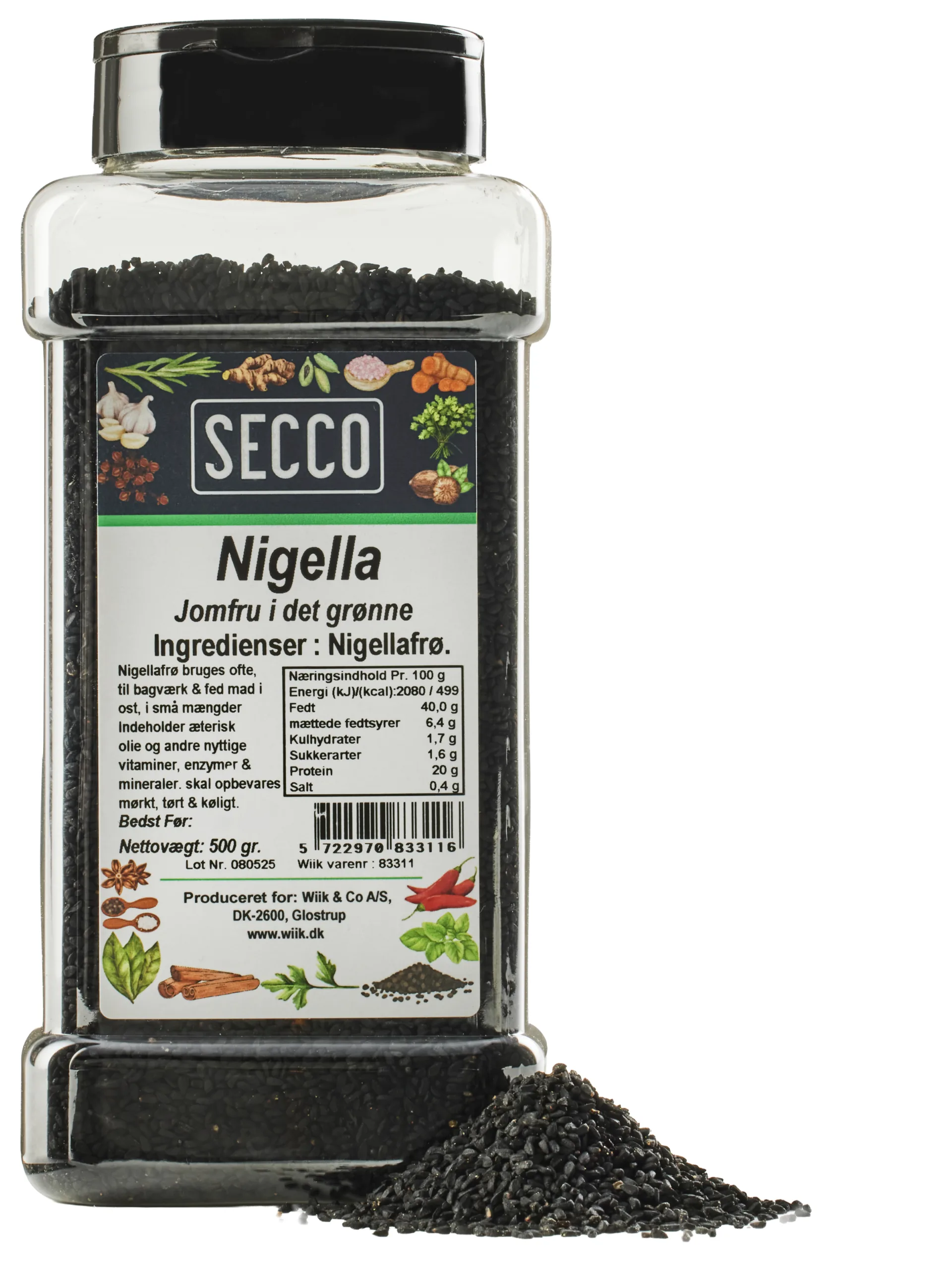 Handelsnavn: Nigellafrø jomfru i det grønne Secco 12x500g