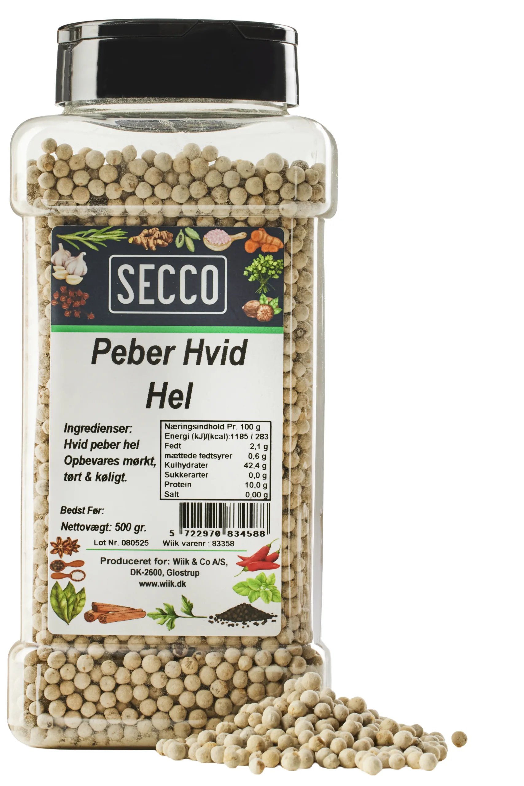 Handelsnavn: Peber hvid hel Secco 12x500g